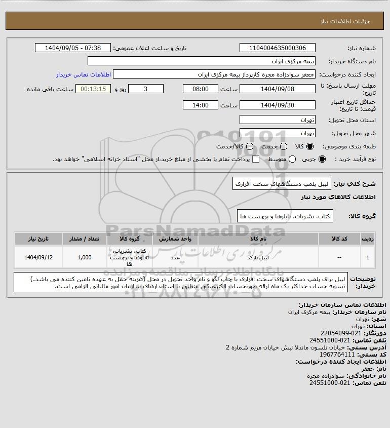 نام دستگاه خریدار:بیمه مرکزی ایران