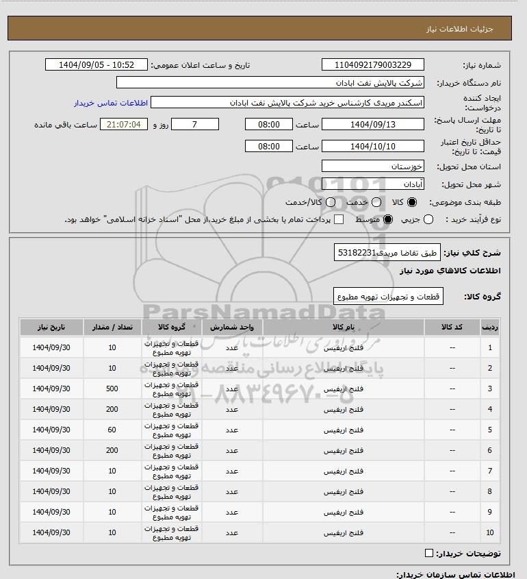 شماره نیاز: 1104092179003229