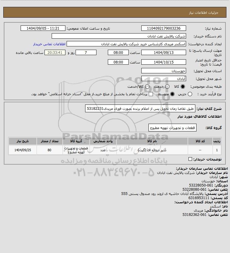 استعلام طبق تقاضا زمان تحویل پس از اعلام برنده بصورت فوری مریدی53182231, استعلام طبق تقاضا زمان تحویل پس از اعلام برنده بصورت فوری مریدی53182231