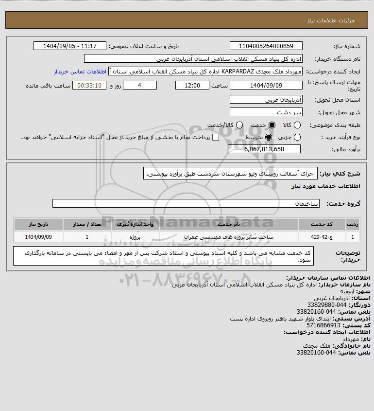نام دستگاه خریدار:اداره کل بنیاد مسکن انقلاب اسلامی استان آذربایجان غربی