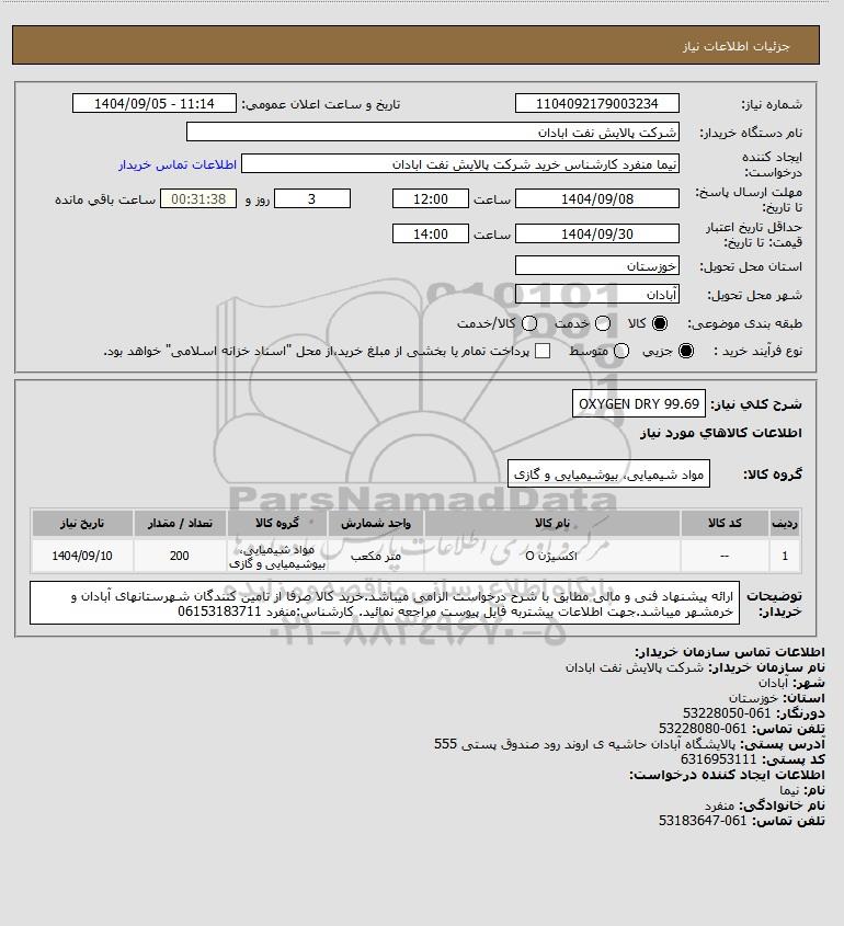 شرح کلی نیاز: OXYGEN DRY 99.69