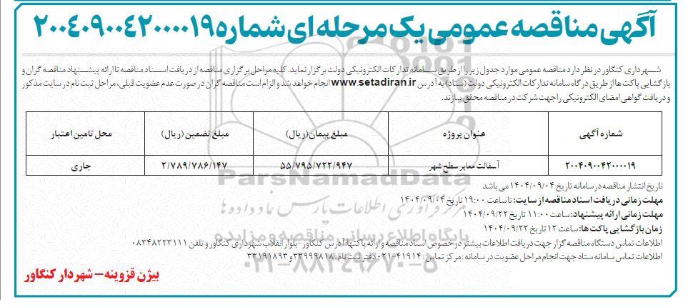 2004090042000019 آسفالت معابر سطح شهر  55.795.722.947 2.789.786.147 جاری