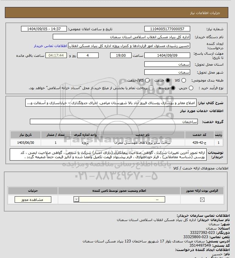 نام سازمان خریدار: اداره کل بنیاد مسکن انقلاب اسلامی استان سمنان
