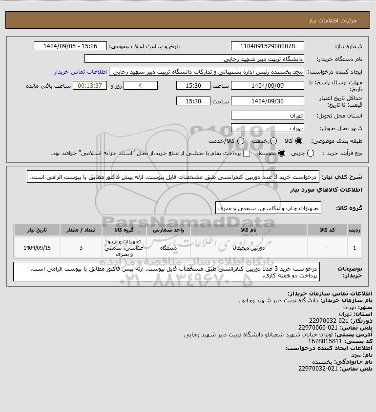 نام دستگاه خریدار:دانشگاه تربیت دبیر شهید رجایی