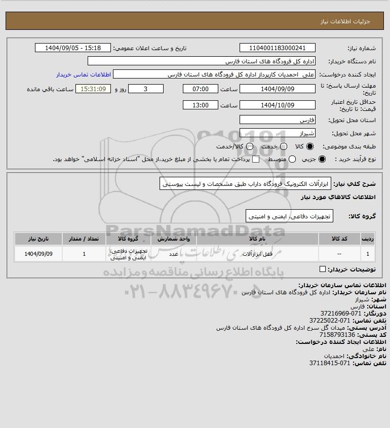 شرح کلی نیاز: ابزارآلات الکترونیک فرودگاه داراب طبق مشخصات و لیست پیوستی