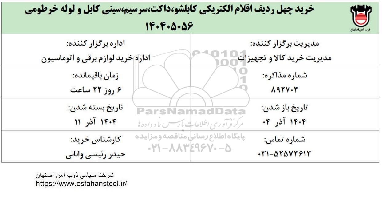 خرید چهل ردیف اقلام الکتریکی کابلشو ، داکت ، سرسیم ، سینی کابل و لوله خرطومی 140405056