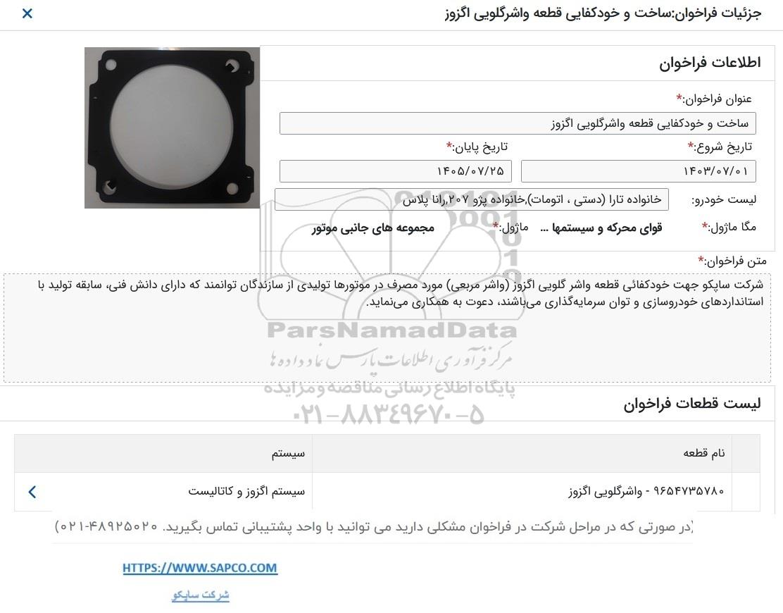 جزییات فراخوان: ساخت و خودکفایی قطعه واشرگلویی اگزوز