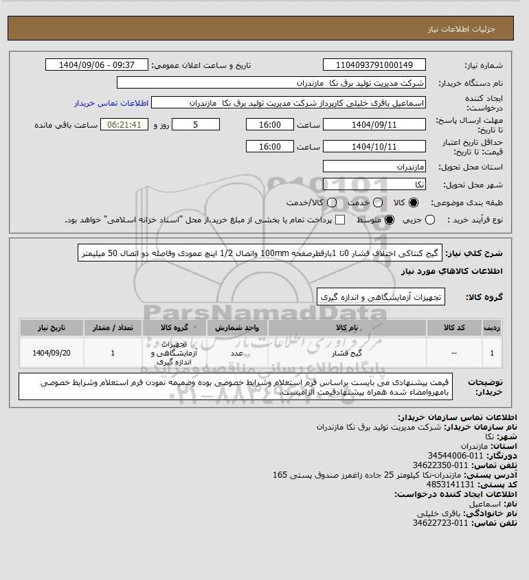 نام دستگاه خریدار:شرکت مدیریت تولید برق نکا مازندران