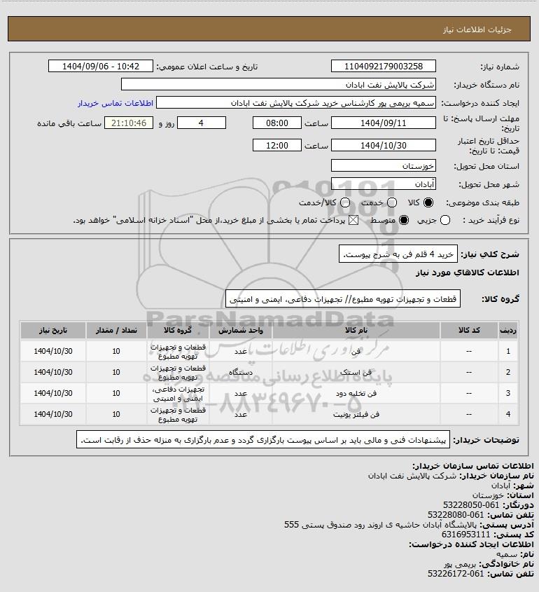 شرح کلی نیاز: خرید 4 قلم فن به شرح پیوست.