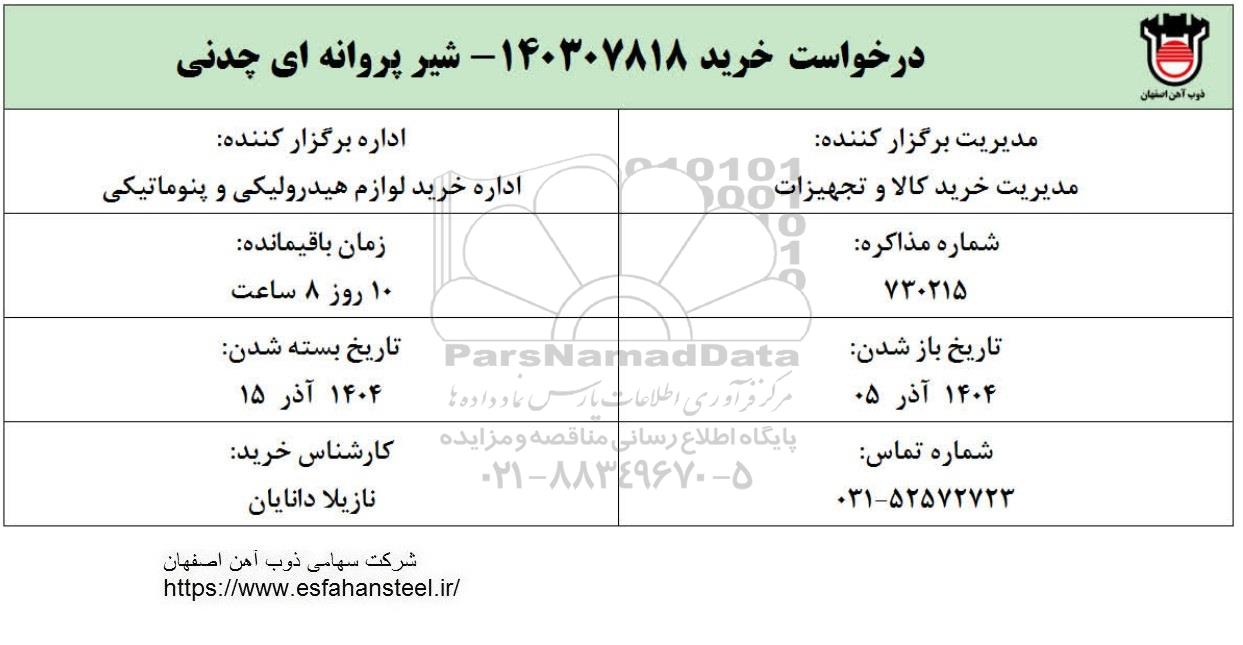 اداره برگزار کننده : اداره خرید لوازم هیدرولیکی و پنوماتیکی