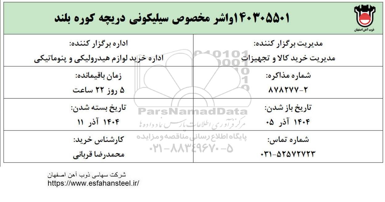 اداره برگزار کننده: اداره خرید لوازم هیدرولیکی و پنوماتیکی