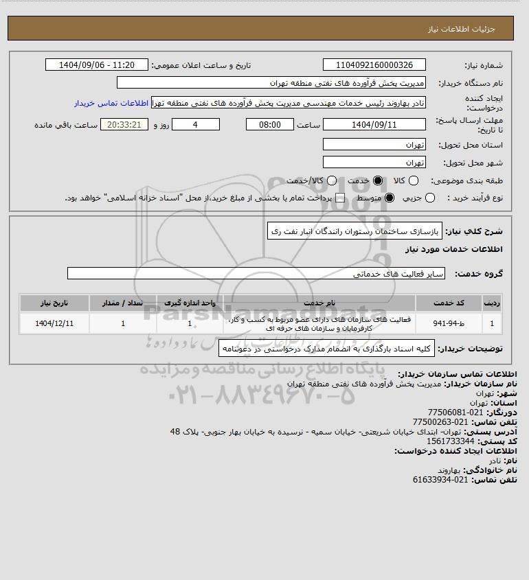 نام دستگاه خریدار:مدیریت پخش فرآورده های نفتی منطقه تهران