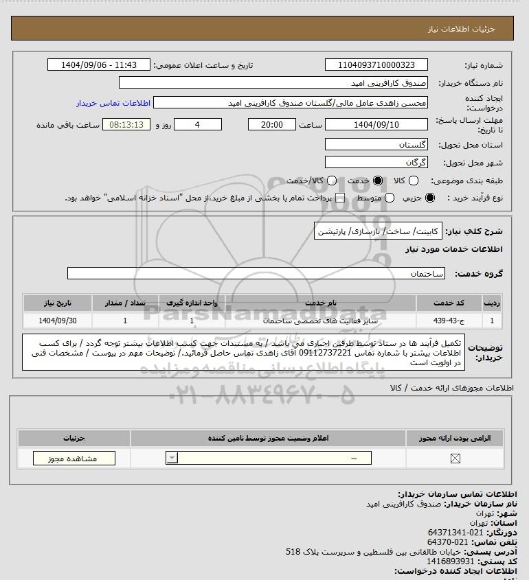شرح کلی نیاز: کابینت/ ساخت/ بازسازی/ پارتیشن