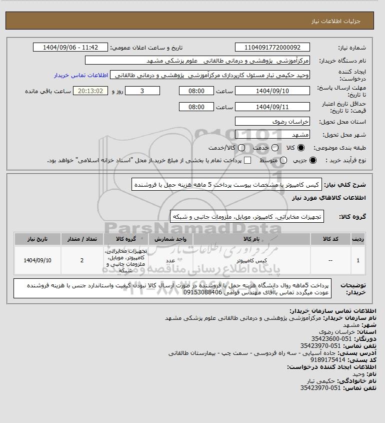 نام دستگاه خریدار:مرکزآموزشی پژوهشی و درمانی طالقانی علوم پزشکی مشهد