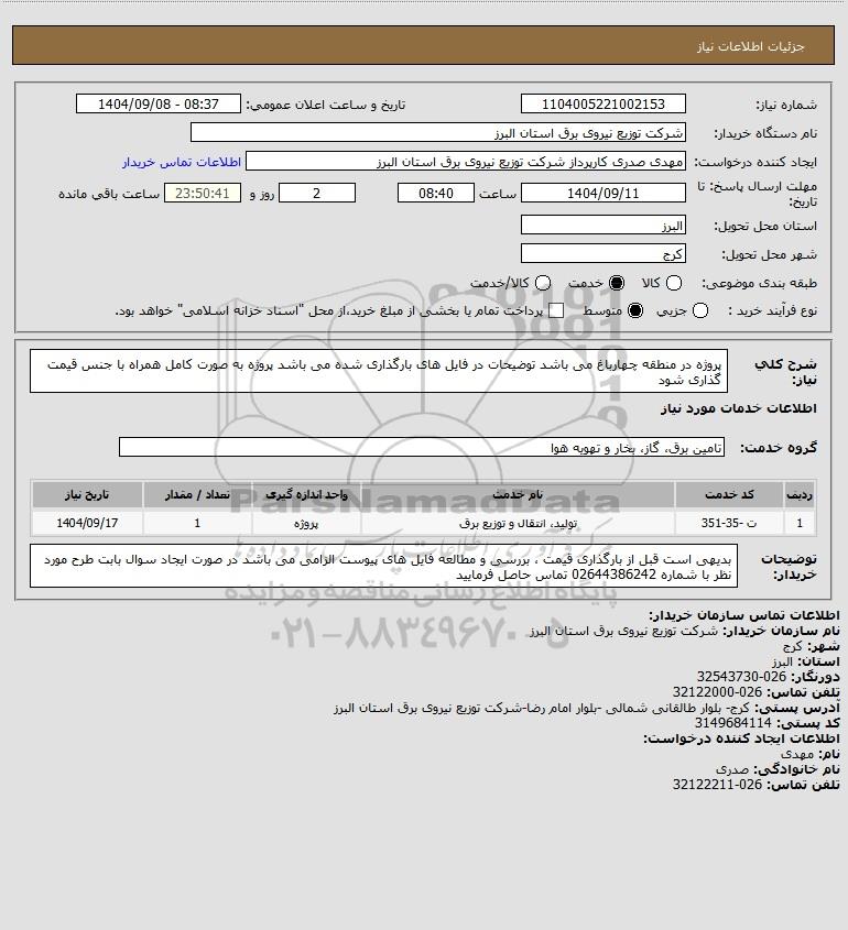 شرح کلی نیاز: پروژه در منطقه چهارباغ می باشد