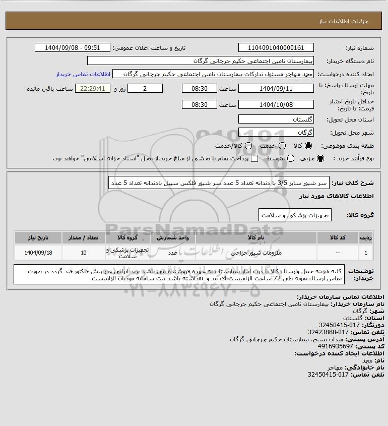 | 1 | -- | ملزومات شیور جراحی | عدد | تجهیزات پزشکی و سلامت | 10 | 1404/09/18 |