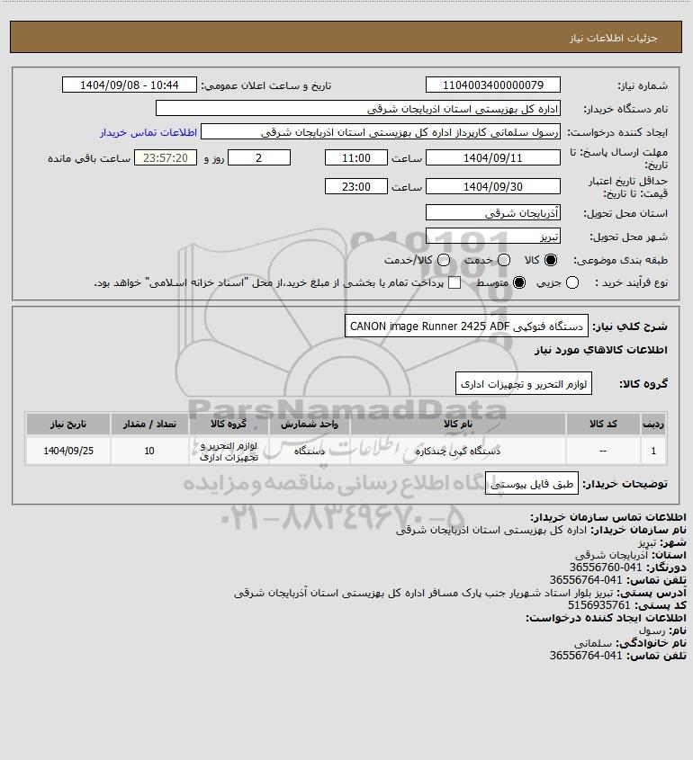 شرح کلی نیاز: دستگاه فتوکپی CANON image Runner 2425 ADF