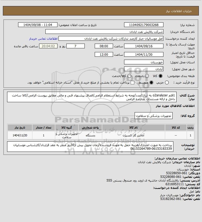 استعلام 1قلم o2analyzer به تیراژ1عدد/توجه به شرایط استعلام الزامی/الصاق پیشنهاد فنی و مالی مطابق پیوست الزامی/کالا ساخت داخل و ارائه مستندات سازنده الزامی, استعلام 1قلم o2analyzer به تیراژ1عدد/توجه به شرایط استعلام الزامی/الصاق پیشنهاد فنی و مالی مطابق پیوست الزامی/کالا ساخت داخل و ارائه مستندات سازنده الزامی