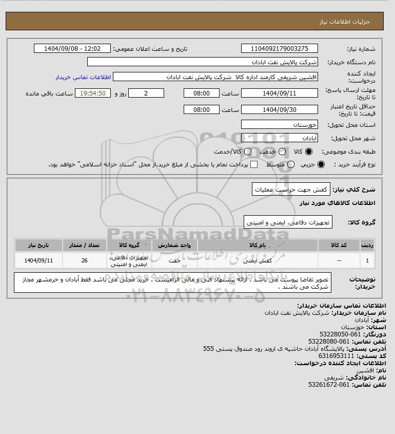 شرح کلی نیاز: کفش جهت حراست عملیات