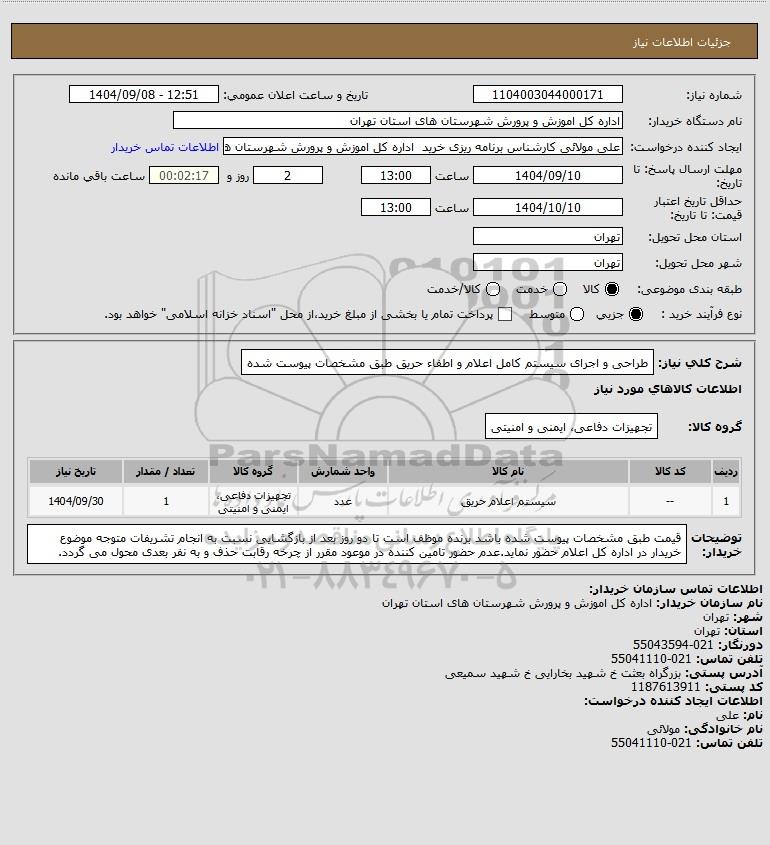 نام سازمان خریدار: اداره کل اموزش و پرورش شهرستان های استان تهران