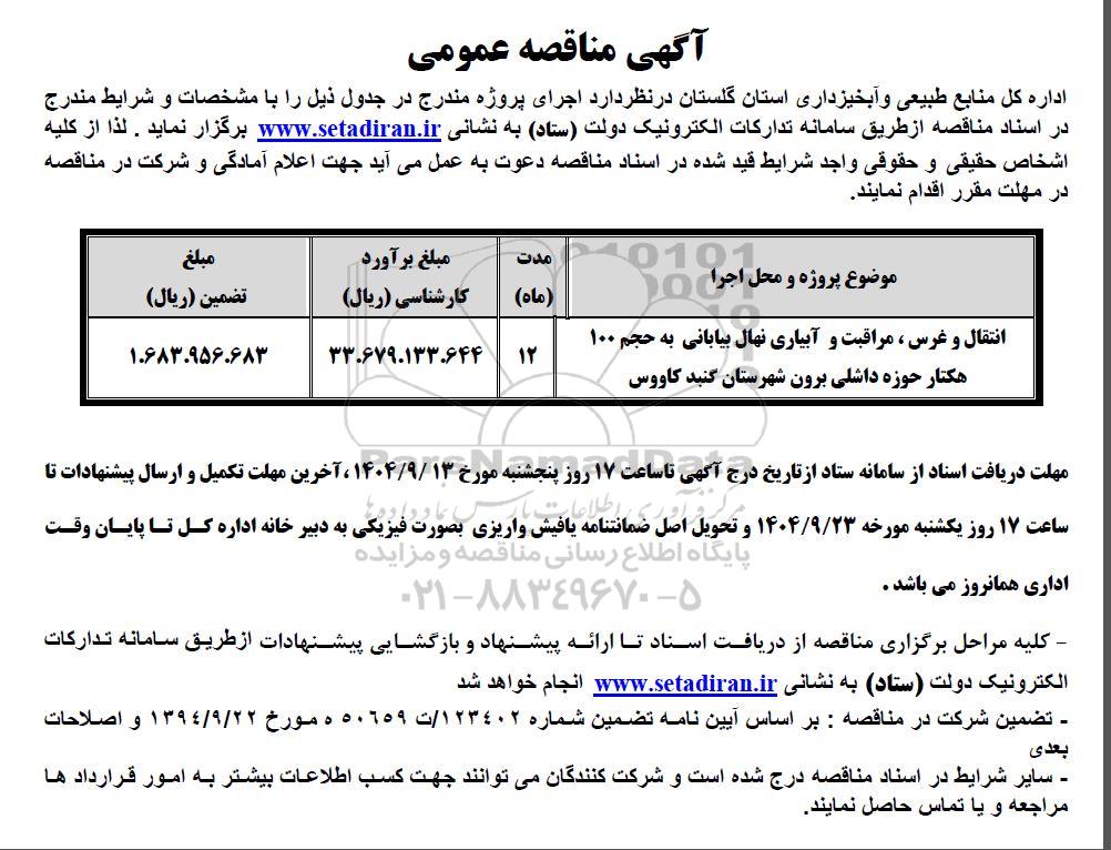 مناقصه انتقال و غرس، مراقبت و آبیاری نهال بیابانی به حجم 100 هکتار ..., مناقصه انتقال و غرس، مراقبت و آبیاری نهال بیابانی به حجم 100 هکتار ...