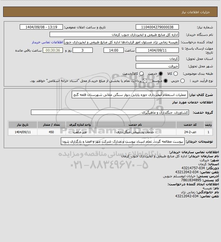 نام دستگاه خریدار:اداره کل منابع طبیعی و ابخیزداری جنوب کرمان