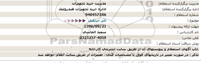 اداره برگزارکننده استعلام:     اداره خرید تجهیزات هیدرولیک