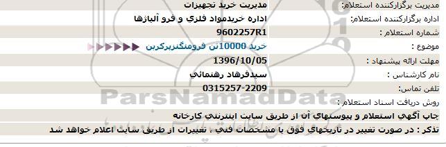 اداره برگزارکننده استعلام: اداره خرید مواد فلزی و فرو آلیاژها