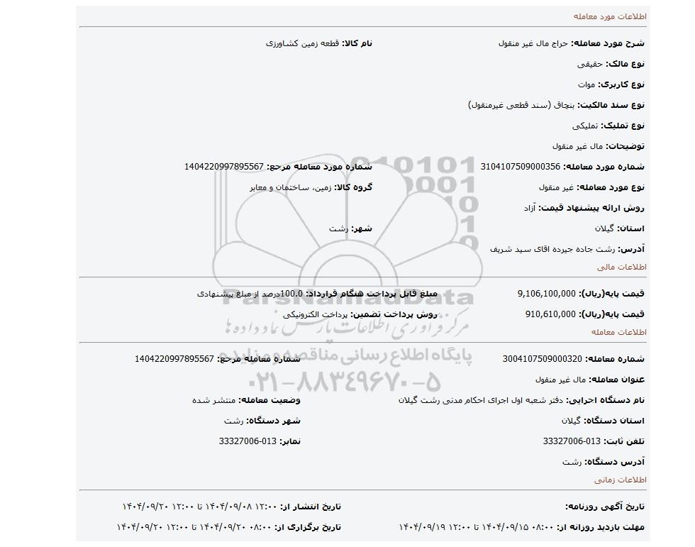 | شماره مورد معامله: 3104107509000356 | شماره مورد معامله مرجع: 1404220997895567 | |