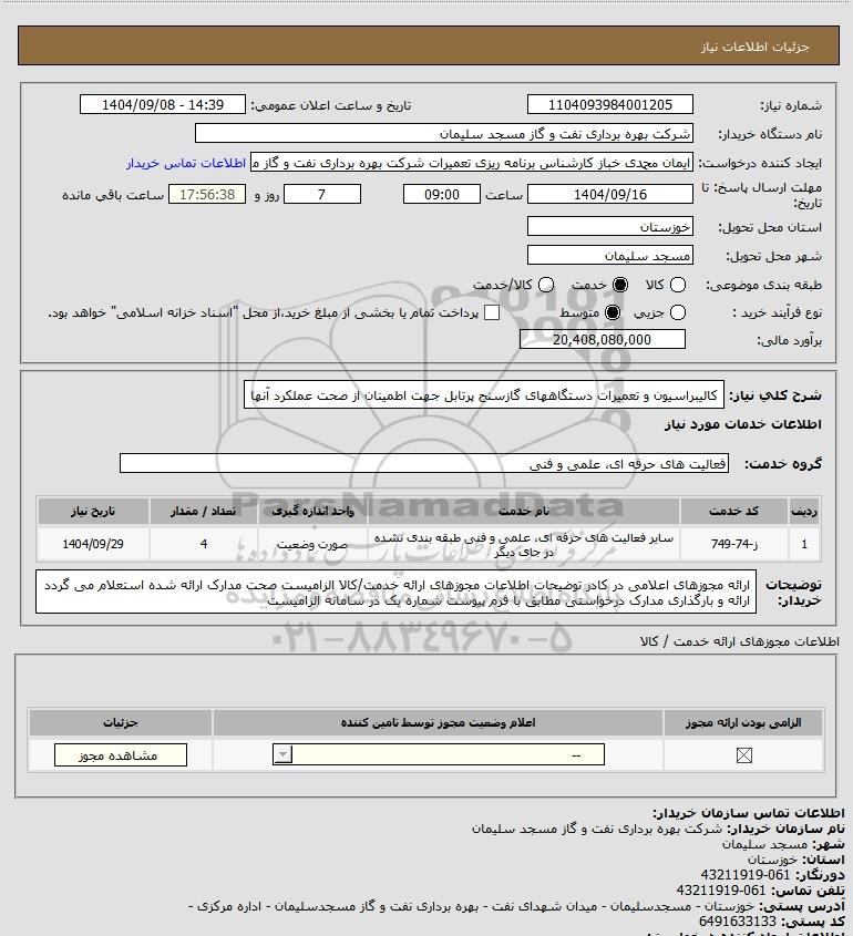 شماره نیاز: 1104093984001205