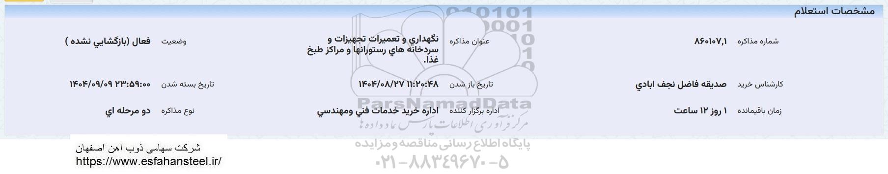 استعلام نگهداری و تعمیرات تجهیزات و سردخانه های رستورانها و مراکز طبخ غذا , استعلام نگهداری و تعمیرات تجهیزات و سردخانه های رستورانها و مراکز طبخ غذا