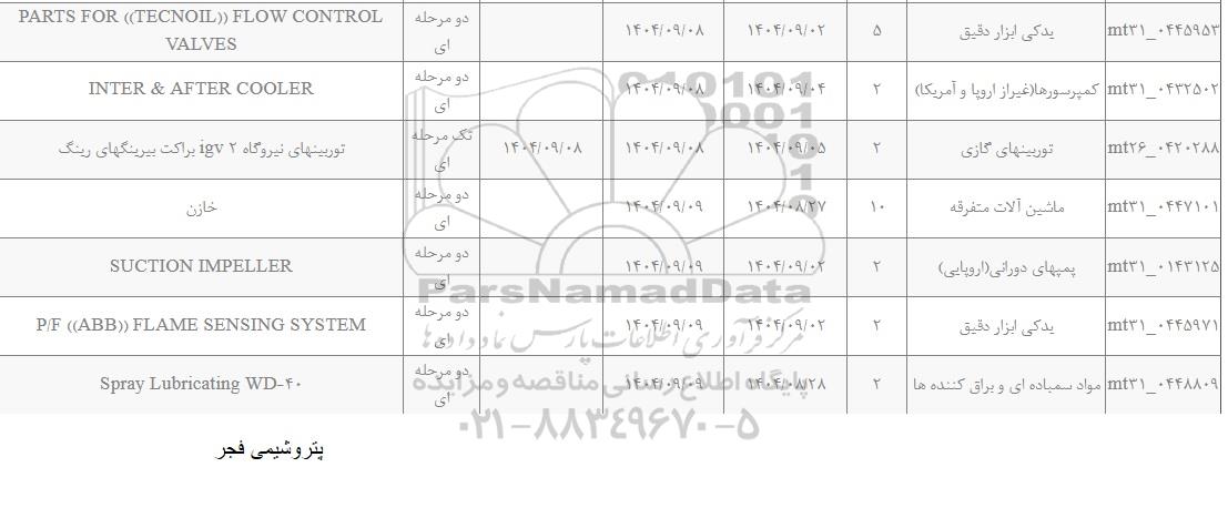 | mt31-0448809 | مواد شیمیایی و براق کننده ها | 2 | 1404.9.9 | دو مرحله ای | spray lubricating WD-40 |