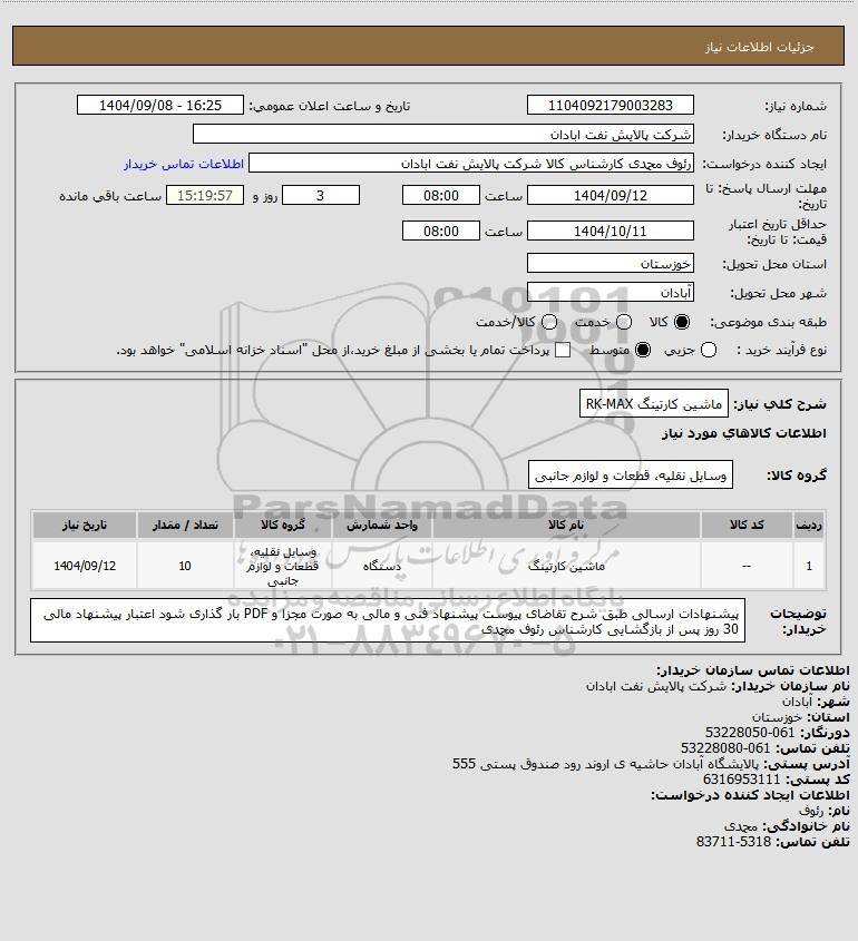 شرح کلی نیاز: ماشین کارتینگ RK-MAX