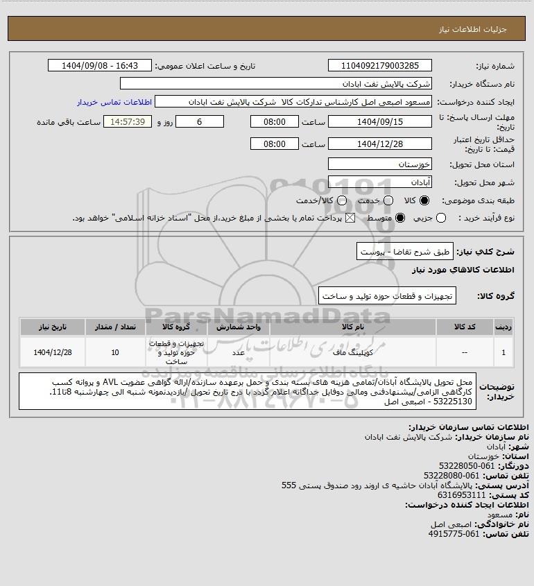 نام دستگاه خریدار:شرکت پالایش نفت ابادان