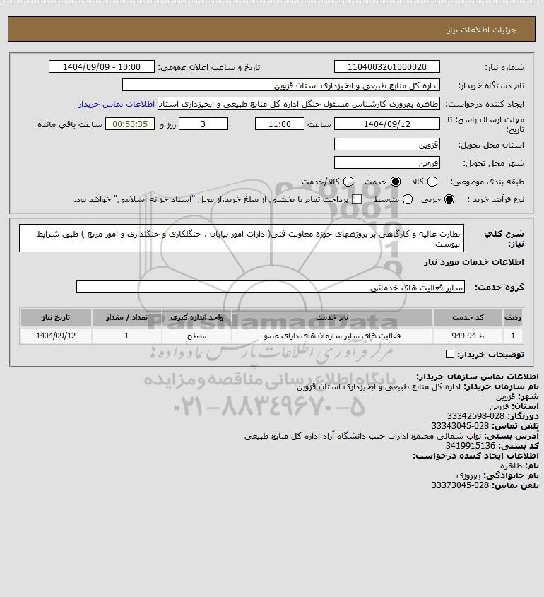 نام دستگاه خریدار:اداره کل منابع طبیعی و ابخیزداری استان قزوین