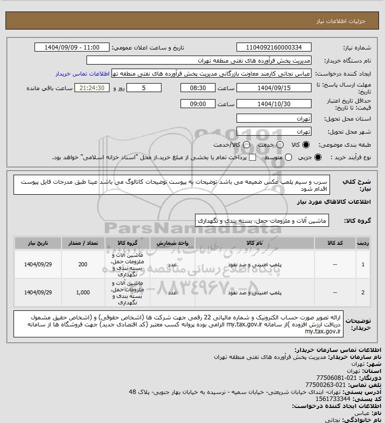 1 -- پلمپ امنیتی و ضد نفوذ عدد ماشین آلات و ملزومات حمل، بسته بندی و نگهداری 200 1404/09/29