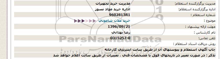 اداره برگزار کننده استعلام: اداره خرید مواد نسوز
