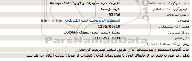 موضوع :استعلام خریدیونیت پمپ الكتریكی