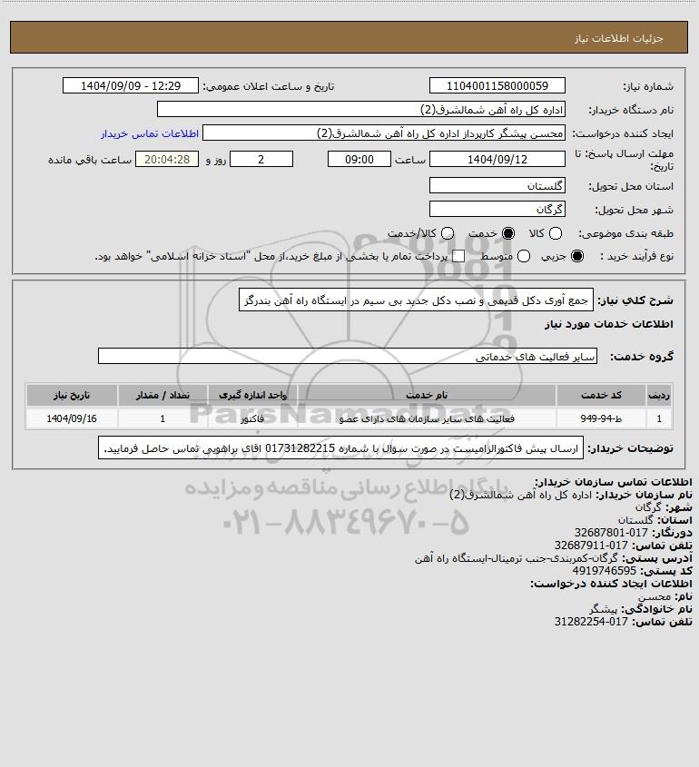 شرح کلی نیاز: جمع آوری دکل قدیمی و نصب دکل جدید بی سیم در ایستگاه راه آهن بندرگز