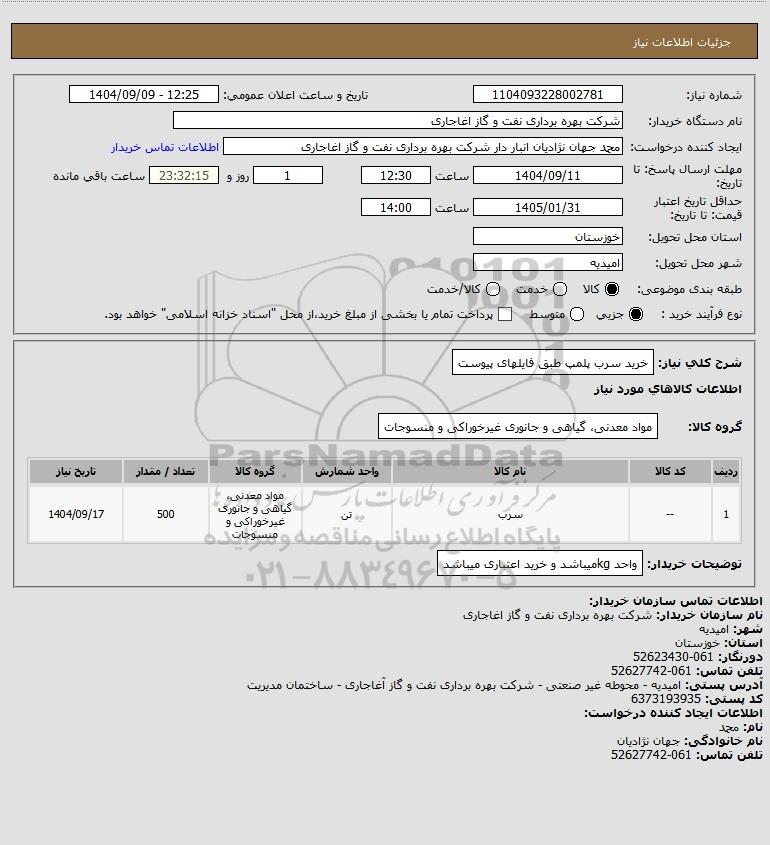 شرح کلی نیاز: خرید سرب پلمپ طبق فایلهای پیوست