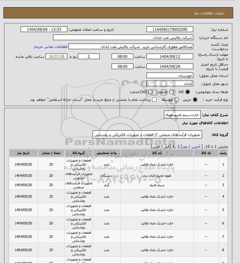 نام سازمان خریدار: شرکت پالایش نفت ابادان