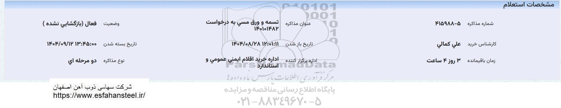 عنوان مذاکره: تسمه و ورق مسی به درخواست 140101482