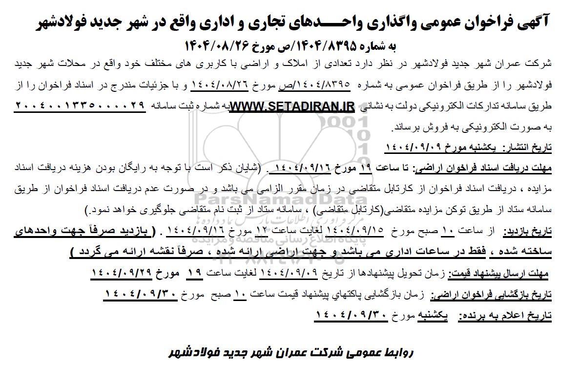 آگهی فراخوان عمومی واگذاری واحدهای تجاری و اداری واقع در شهر جدید فولادشهر ؟