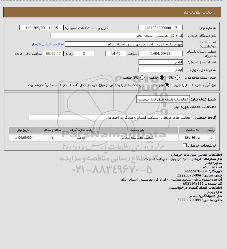 استعلام آزمایشات ژنتیک طبق فایل پیوست, استعلام آزمایشات ژنتیک طبق فایل پیوست