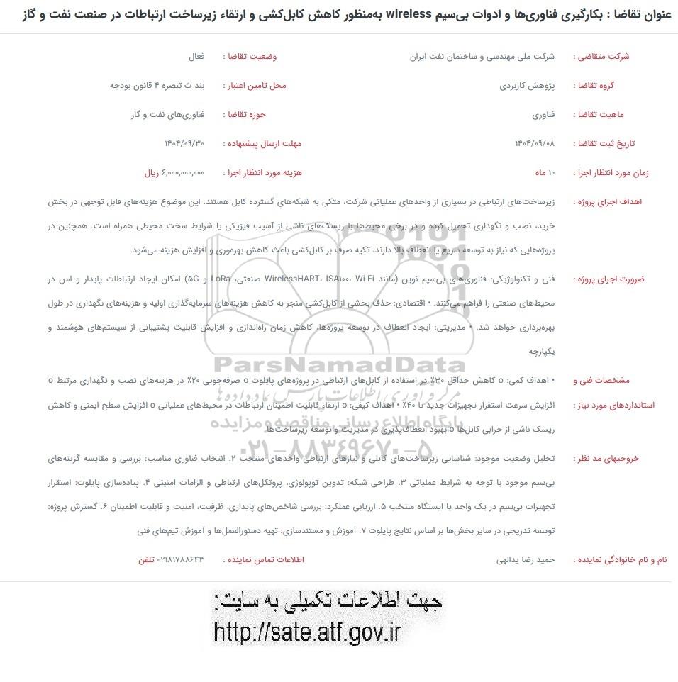 مهلت ارسال پیشنهاده : 1404.09.30