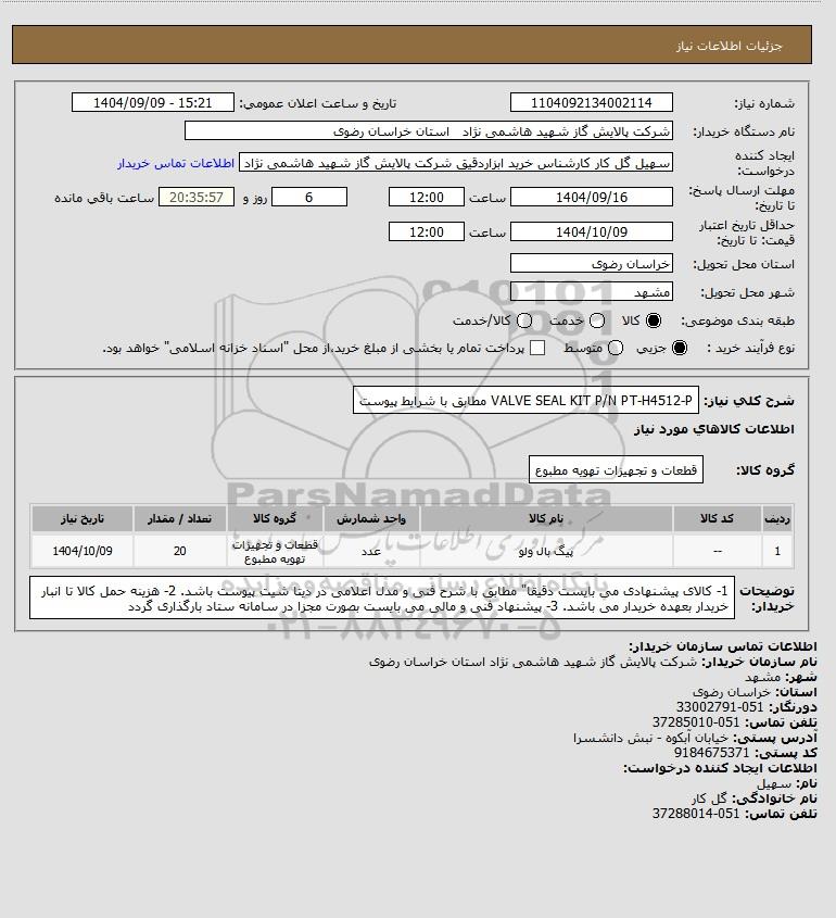 نام دستگاه خریدار:شرکت پالایش گاز شهید هاشمی نژاد استان خراسان رضوی
