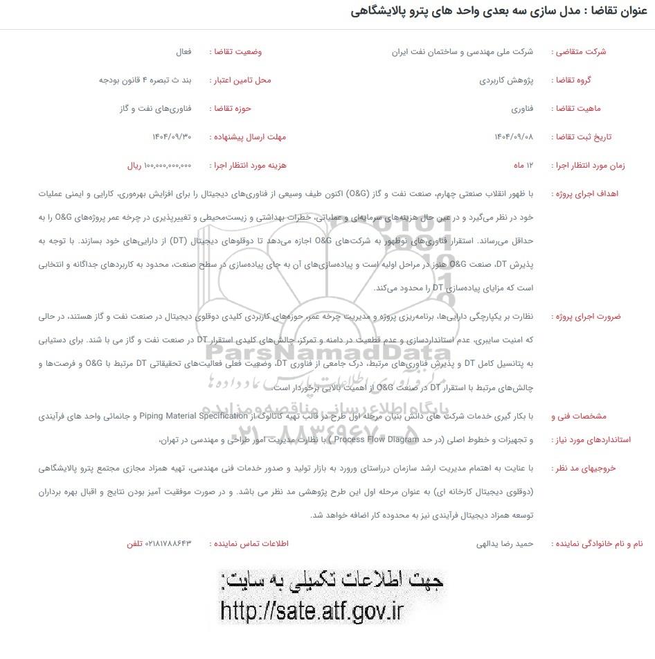 شرکت متقاضی : شرکت ملی مهندسی و ساختمان نفت ایران