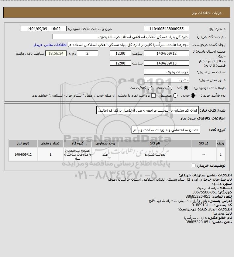 نام دستگاه خریدار:اداره کل بنیاد مسکن انقلاب اسلامی استان خراسان رضوی