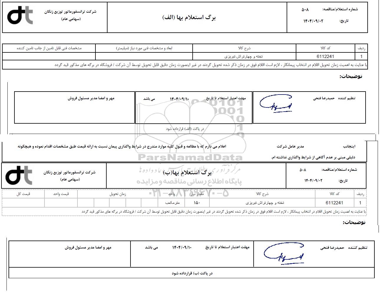 تنظیم کننده: حمیدرضا فتحی - مهلت اعتبار استعلام تا تاریخ 1404.09.10 می باشد. - در پاکت (الف) قرار داده شود