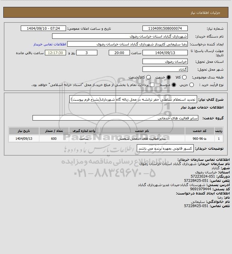 نام سازمان خریدار: شهرداری گناباد استان خراسان رضوی